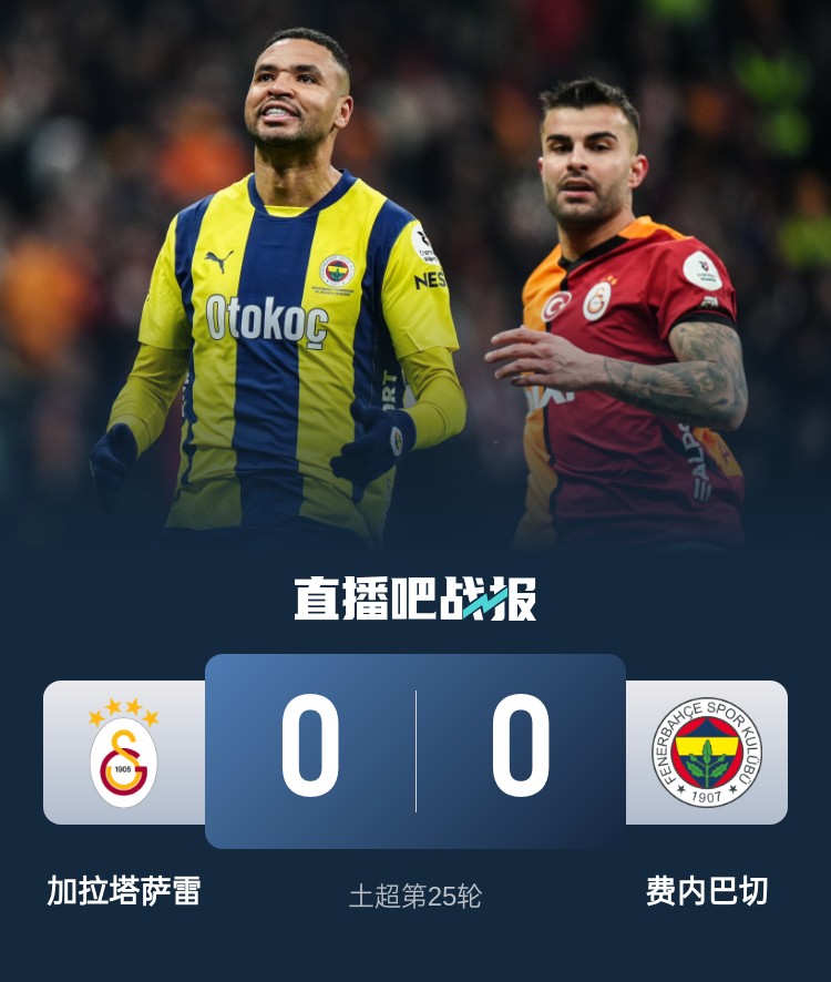 土超聯(lián)賽第25輪,加拉塔薩雷0-0戰(zhàn)平費內巴切,繼續(xù)以6分優(yōu)勢領跑土超。